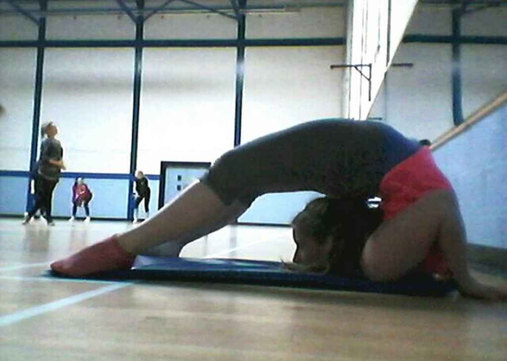 Video interview with her: she does train a bit in shorts and crop top in it. She also says she doesn’t like the ‘stripping’ links and prefers to go with ‘ballet-gymnastics on a pole’