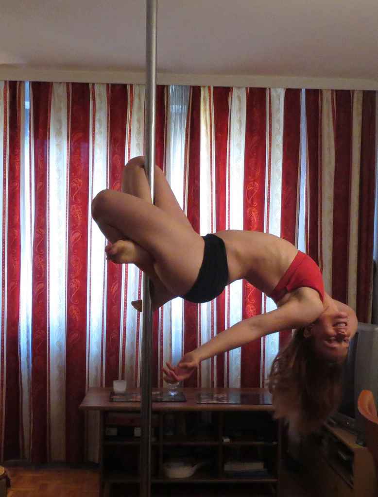 Later this week, I can try to film a video of the way I do it in case this explanation doesn’t make sense… but here goes: I personally find it easier (and prettier) to get into on spinny pole rather than static. I do it as part of a combo where I start off in a tuck – either starting on your knees next to the pole and tucking up or from standing – then I start to allow my arms to extend, which allows my bum to come up until my body is parallel to the floor, I extend my upper leg, then I can let go of my top hand.